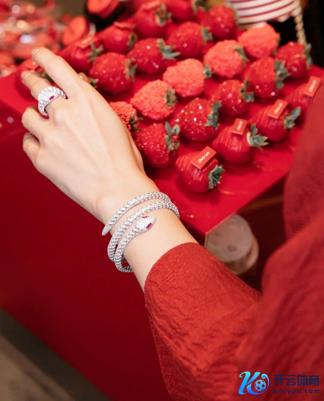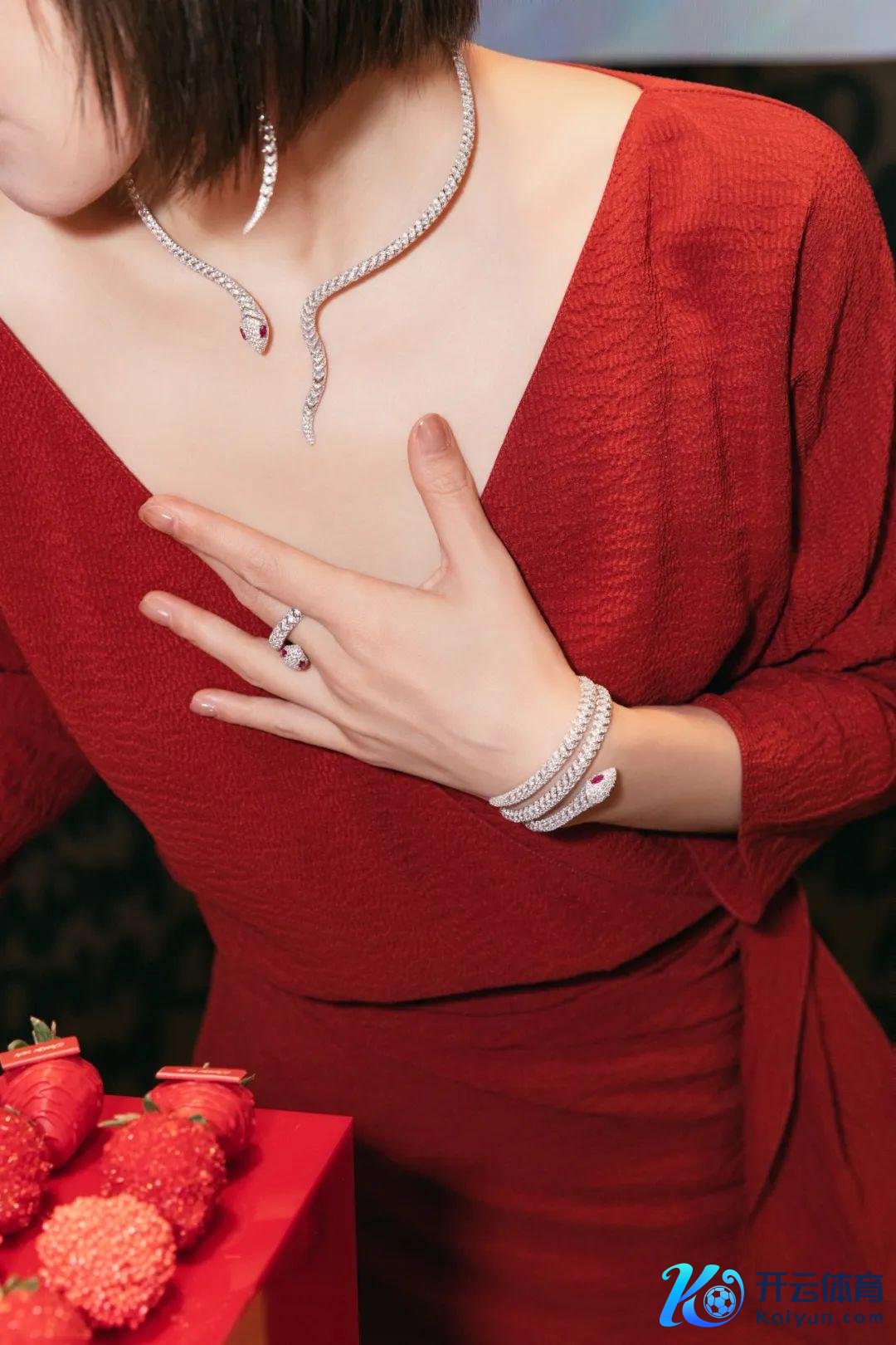 那片红是如斯卓绝,明艳却不俗气,张扬却不失腾贵优雅,而况穿透力超强,镶嵌满亮堂坚持的蛇形珠宝迂回穿行其中,宛如一幅纵情且充满神性光芒的油画。
