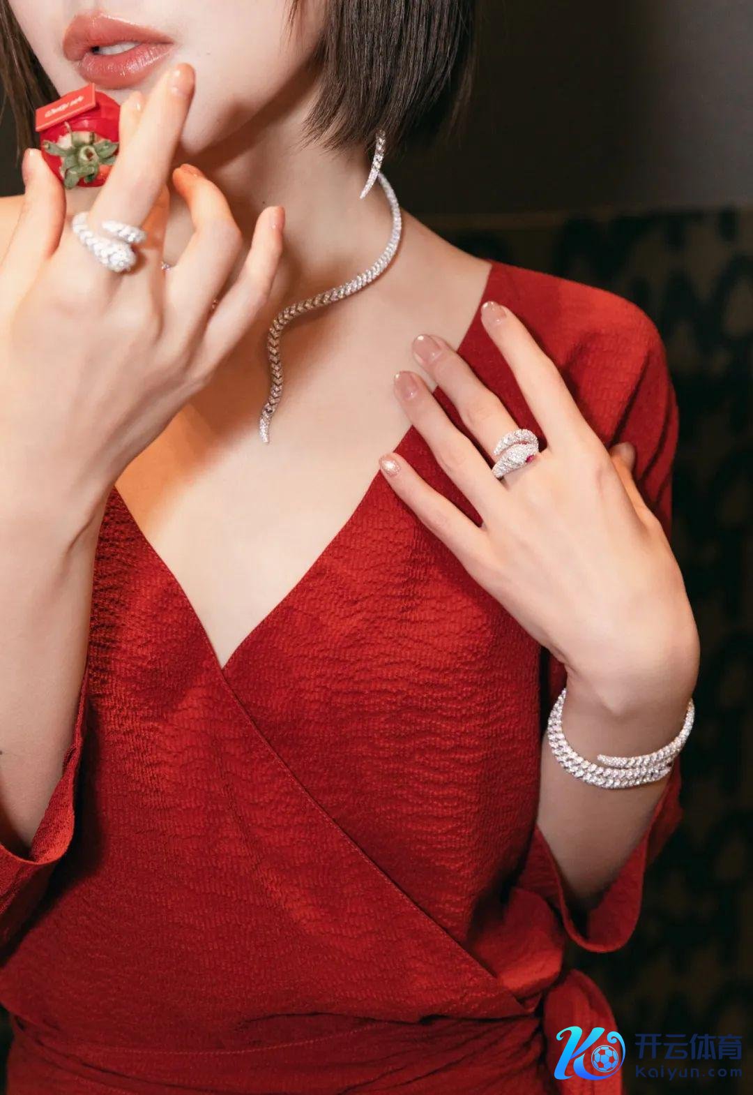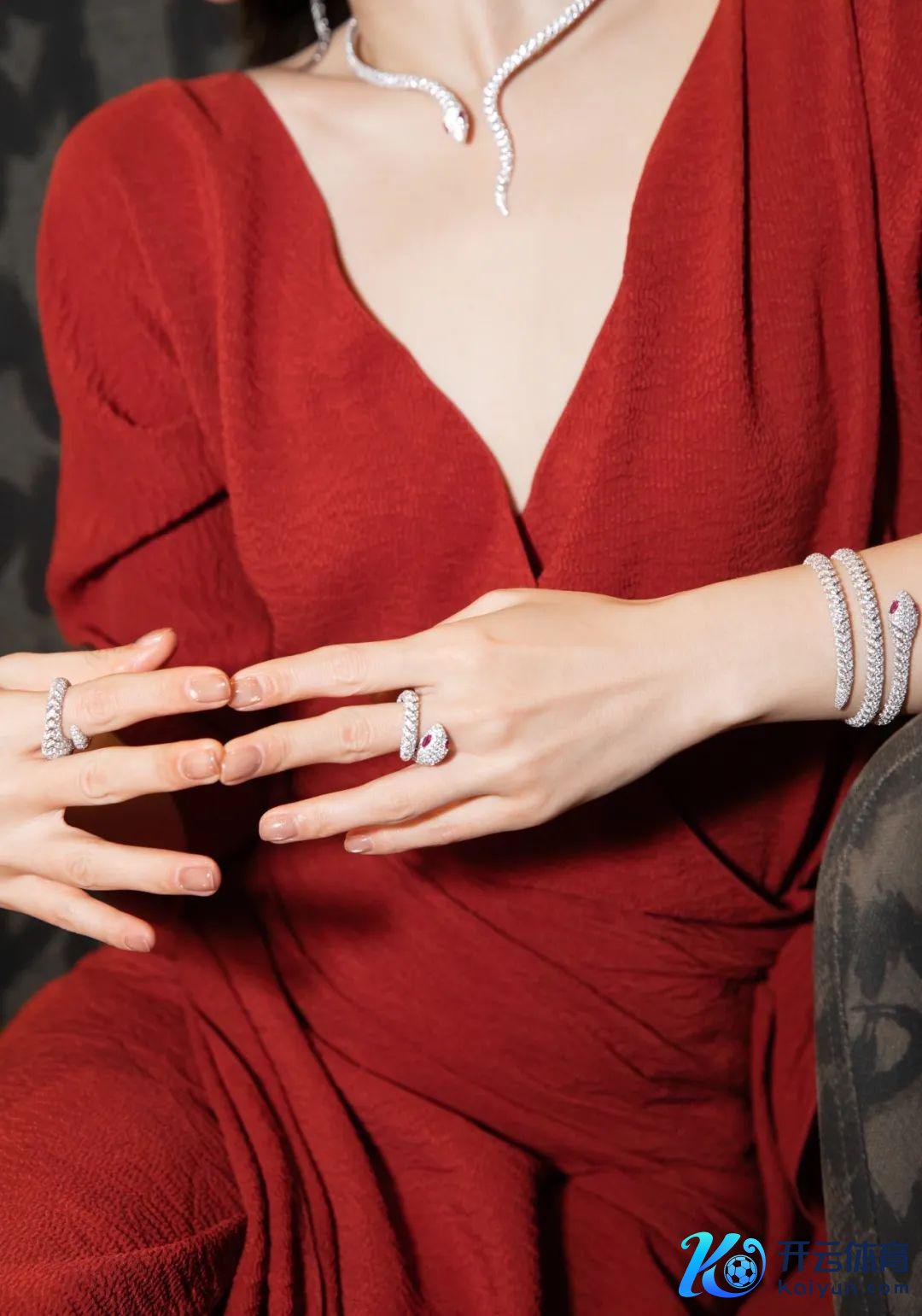 只是隔着屏幕看到这个系列告白大片,就照旧被那一派浓郁的红色氛围,以及线路其中摩登蛇形珠宝迷住,眼睛紧紧收拢,少许也挪不开。