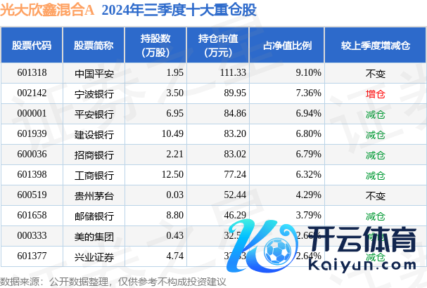 光大欣鑫搀杂A为搀杂型-天真基金,字据最新一期基金季报默契,该基金财富建设:股票占净值比81.37%,债券占净值比4.95%,现款占净值比4.51%。基金十大重仓股如下: