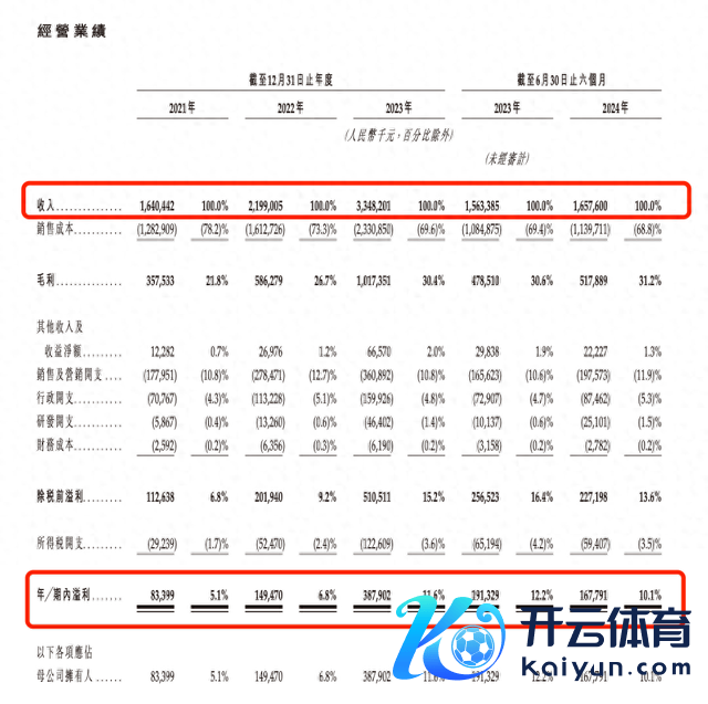 盈利水宽泛面,2021年至2023年,期内利润辞别为8339.9万元、1.49亿元和3.88亿元;2024年上半年利润为1.68亿元,2023年同期为1.91亿元,同比下滑12.3%。2024年上半年经调治利润为2.14亿元,旧年同期为1.94亿元。